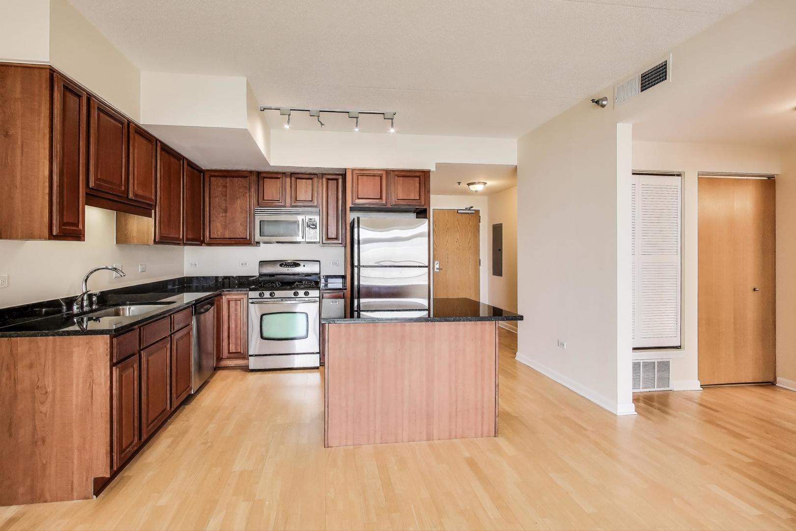Available now! Enjoy beautiful city views from this spacious 1 bed, 1.5 bath condo in the heart of the South Loop. Hardwood floors flow through the entryway, kitchen, and living room, which opens to a large west-facing balcony perfect for skyline and sunset views. The kitchen features stainless steel appliances, granite counters, and an island with seating for two. The primary suite offers generous closet space and a spa-like bathroom with a soaking tub, separate shower, and dual vanities. In-unit laundry and garage parking included. Freshly painted throughout! Building amenities include on-site management, a fitness center, and a sundeck. Prime South Loop location - steps from public transportation, the lakefront trail and beaches, Museum Campus, Soldier Field, Grant Park, the Loop, and excellent shopping and dining. Max 2 pets with a 40 lb weight limit per pet. No smoking. $600 move-in/move-out to the building. Security deposit equal to one month's rent to the landlord. Minimum requirements: 650+ credit score and 3x monthly gross income to rent ratio. No evictions.