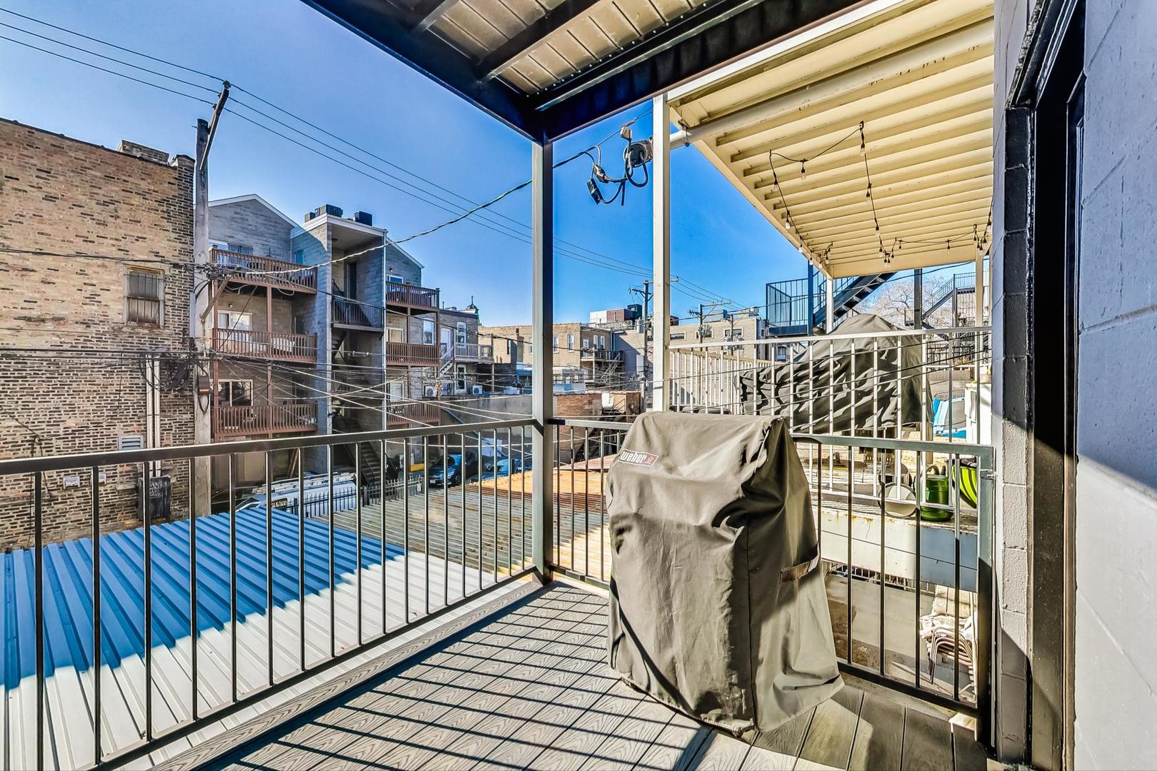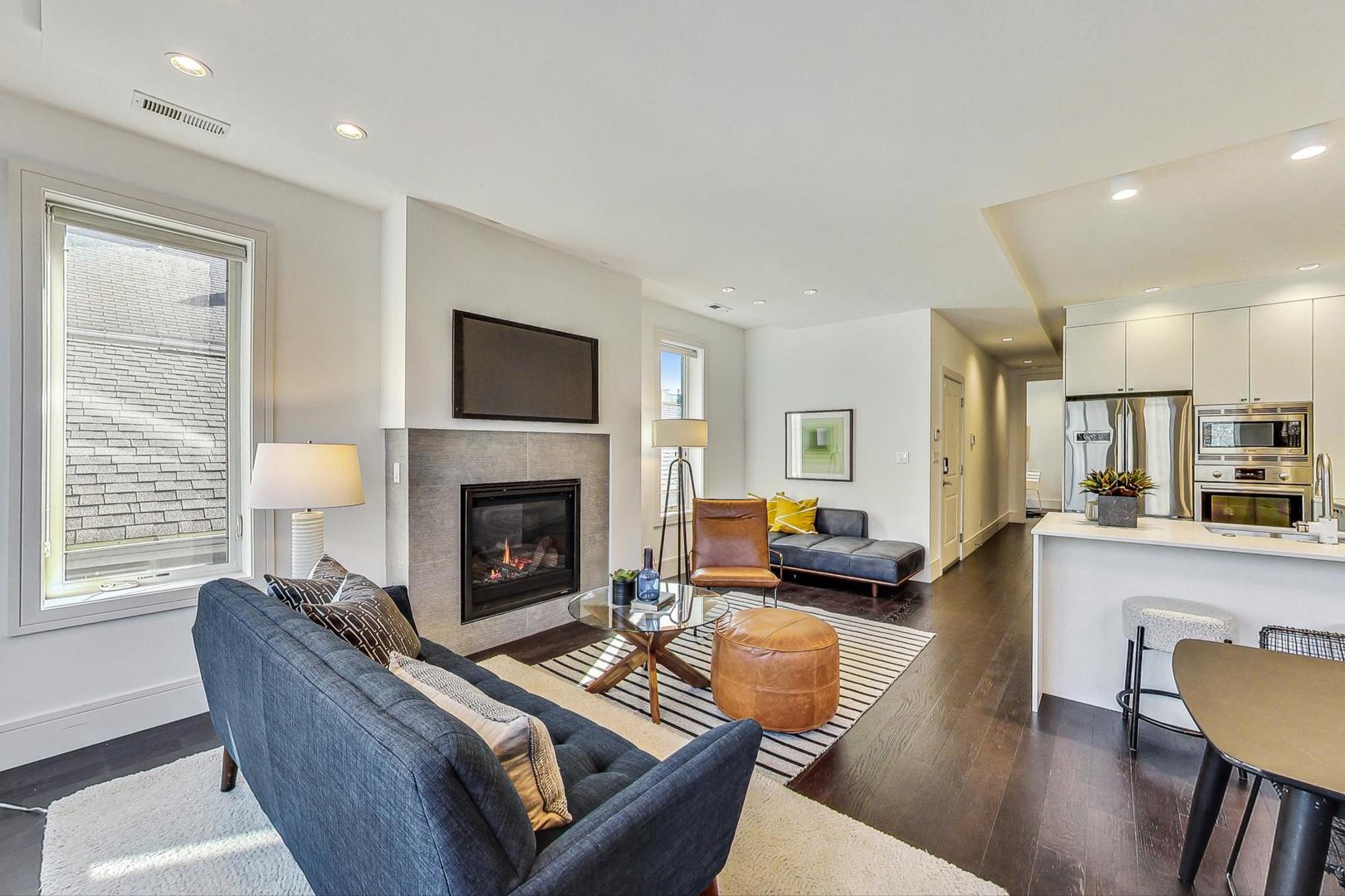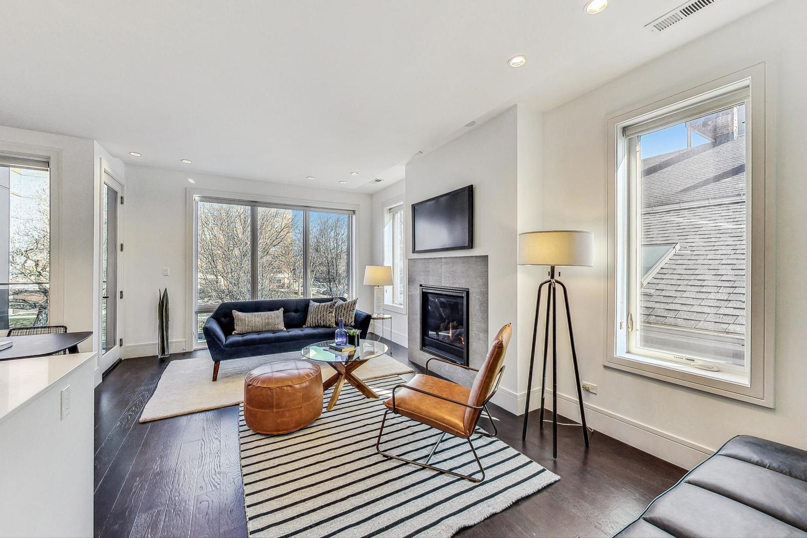**CLICK THE BUTTON TO WATCH THE VIRTUAL TOUR** You like luxury? You get luxury EVERYTHING in this Noble Square 3 bed, 2 bath newer construction home. From the 9-foot ceilings to the 8-foot solid core doors, to the built-in dry bar, to the custom details... every inch of this home was meticulously designed and cared for. The open concept living space features a gorgeous kitchen with Bosch appliances, a designated dining space, and a large living room with a gas fireplace and floor to ceiling windows that give you a gorgeous view of tree-lined and super quiet Fry Street. Want to enjoy that morning coffee outside? You've got the perfect balcony (the first of two outdoor spaces!) just off the living room to do it. All three bedrooms have built-out custom closets and loads of natural light, and the primary bedroom has a large, stunning en-suite bath with double vanity and spacious rain shower. There's an additional balcony off the back of the home (accessible from the primary bedroom and hallway) that's the perfect size for a grill and a dining table. One parking spot in a fully secured carport is also included in the price. And the best part of all? You're on a quiet, relaxing street, just steps away from the amazing food and shops along Chicago Ave (Flo, Beatnik, JJ Thai, Forbidden Root, West Town Bakery, and so many more!) and Eckhart Park, AND a super short jaunt to the West Loop and Wicker Park.