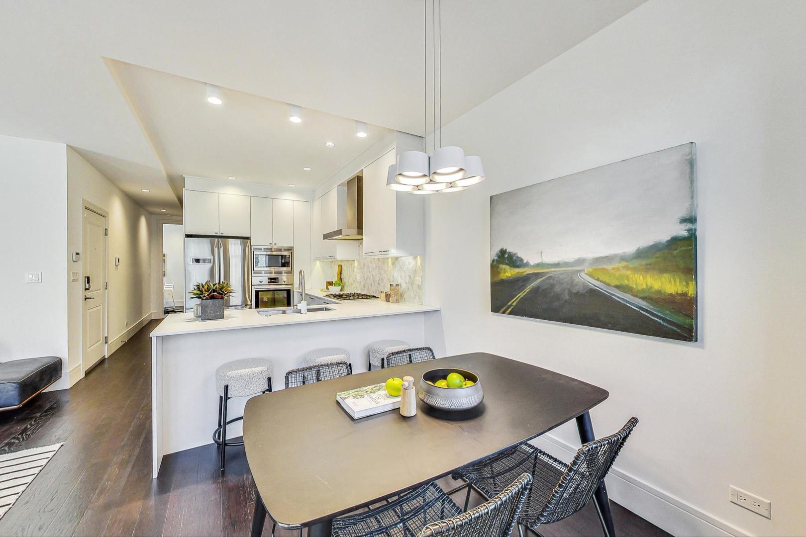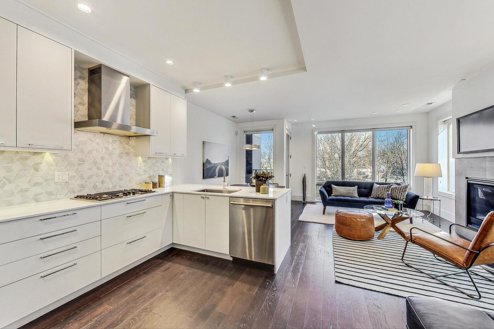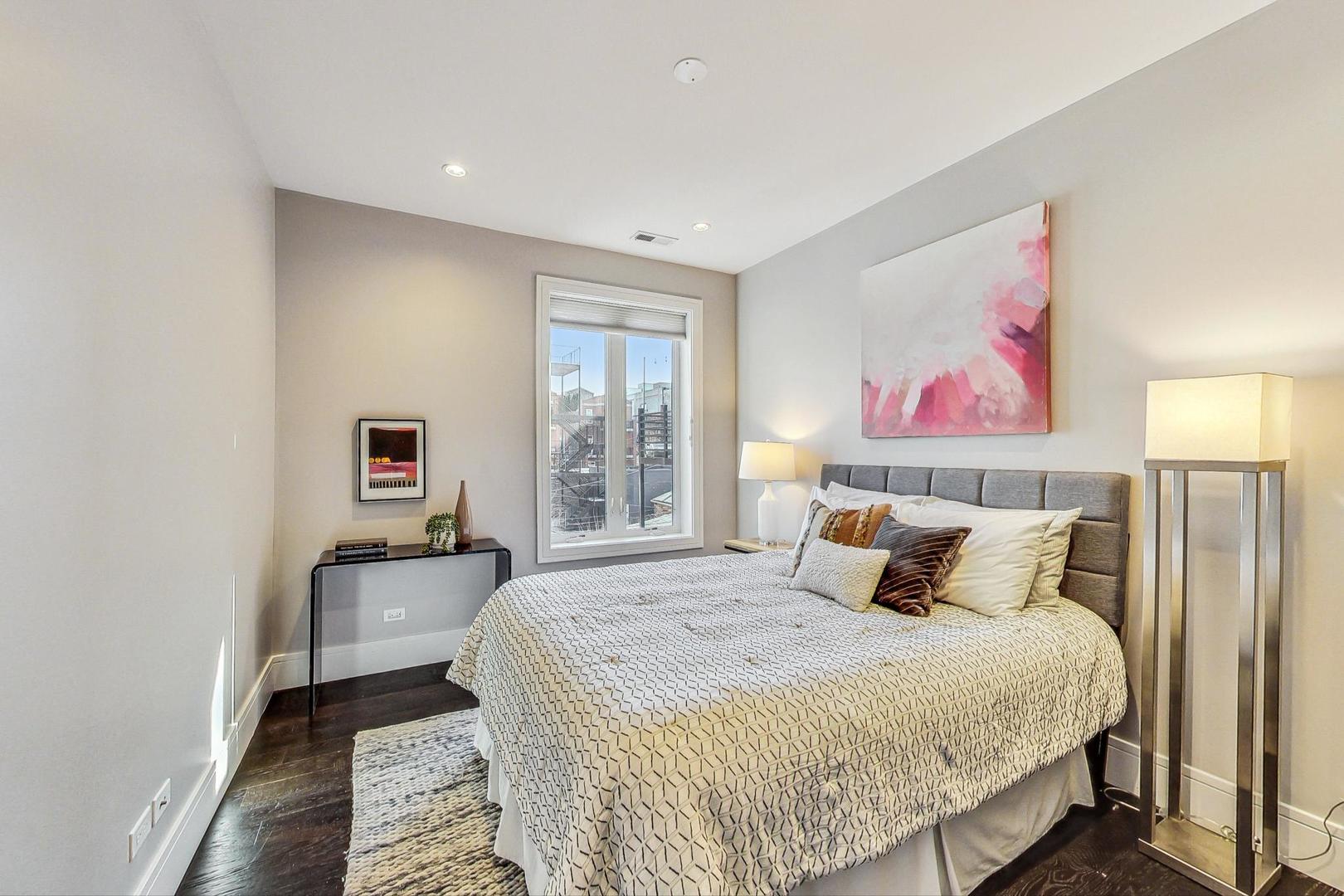 **CLICK THE BUTTON TO WATCH THE VIRTUAL TOUR** You like luxury? You get luxury EVERYTHING in this Noble Square 3 bed, 2 bath newer construction home. From the 9-foot ceilings to the 8-foot solid core doors, to the built-in dry bar, to the custom details... every inch of this home was meticulously designed and cared for. The open concept living space features a gorgeous kitchen with Bosch appliances, a designated dining space, and a large living room with a gas fireplace and floor to ceiling windows that give you a gorgeous view of tree-lined and super quiet Fry Street. Want to enjoy that morning coffee outside? You've got the perfect balcony (the first of two outdoor spaces!) just off the living room to do it. All three bedrooms have built-out custom closets and loads of natural light, and the primary bedroom has a large, stunning en-suite bath with double vanity and spacious rain shower. There's an additional balcony off the back of the home (accessible from the primary bedroom and hallway) that's the perfect size for a grill and a dining table. One parking spot in a fully secured carport is also included in the price. And the best part of all? You're on a quiet, relaxing street, just steps away from the amazing food and shops along Chicago Ave (Flo, Beatnik, JJ Thai, Forbidden Root, West Town Bakery, and so many more!) and Eckhart Park, AND a super short jaunt to the West Loop and Wicker Park.