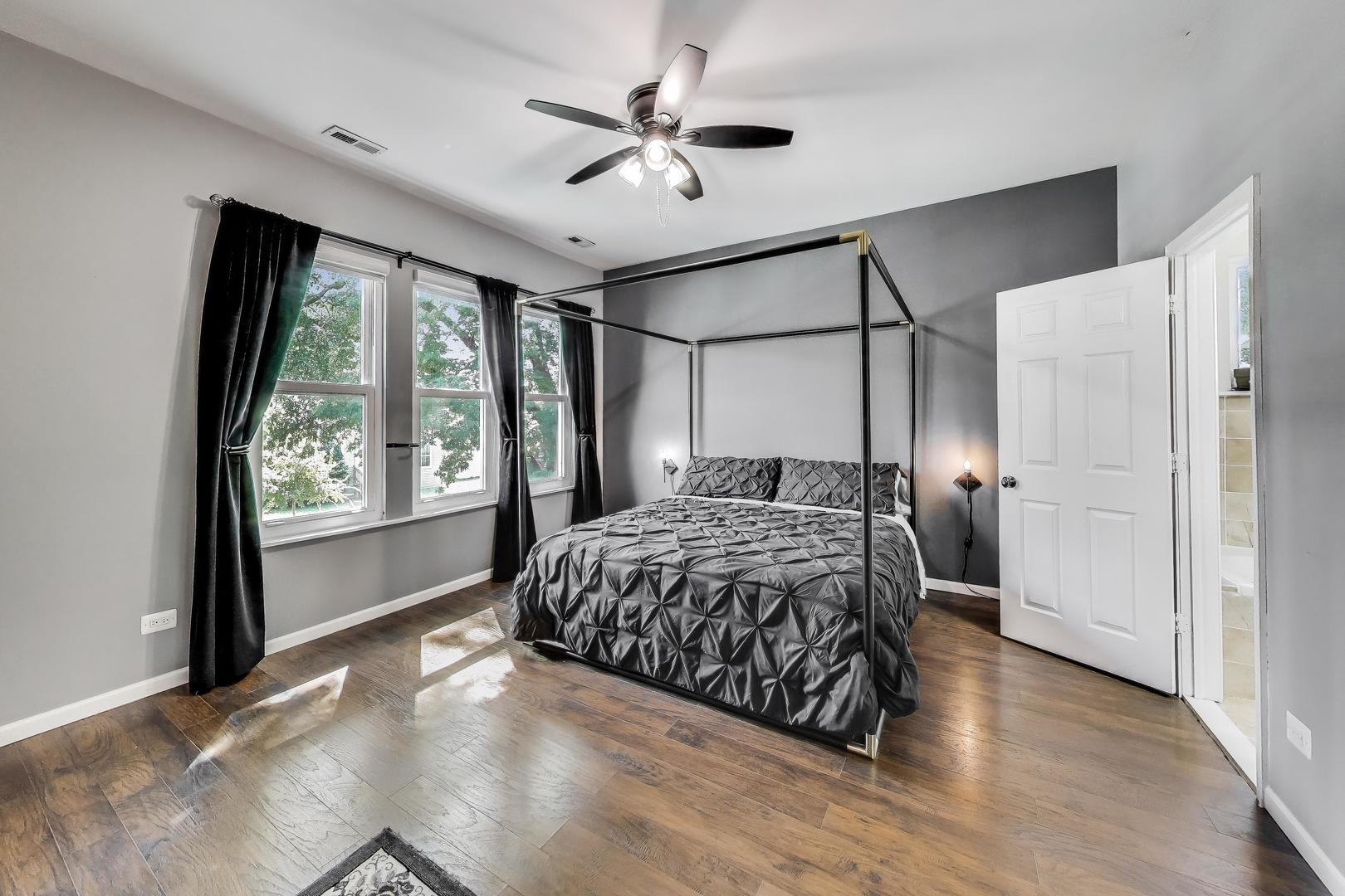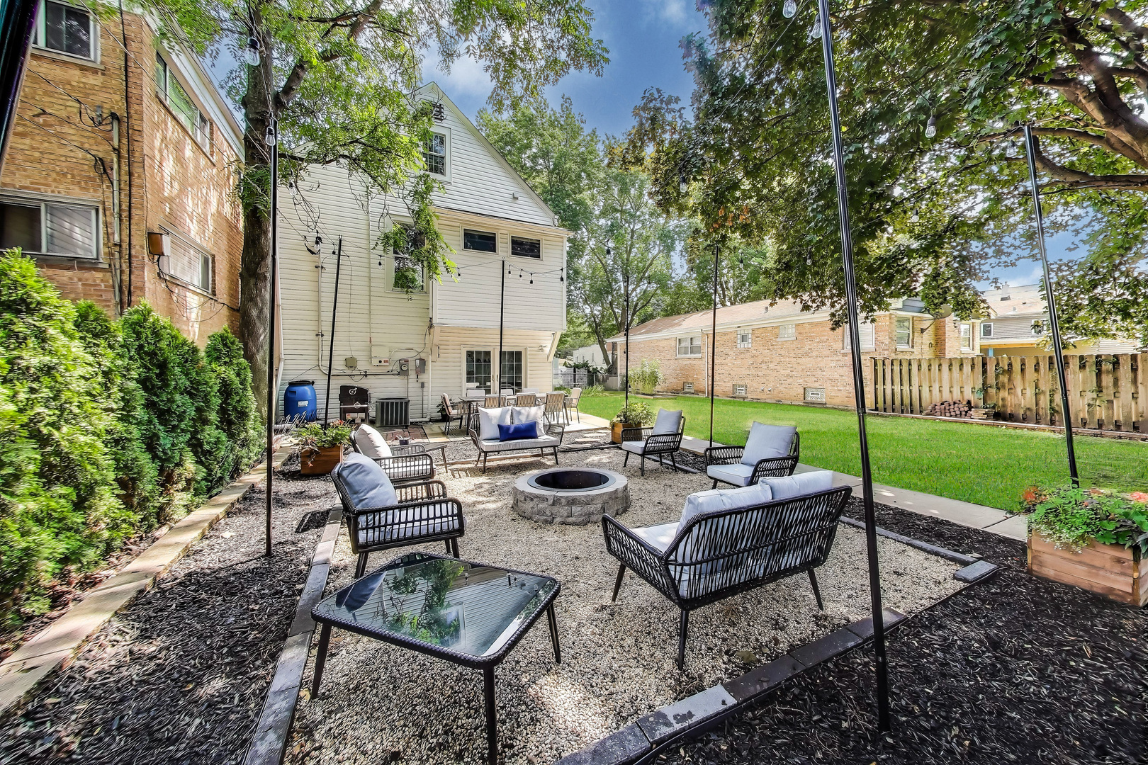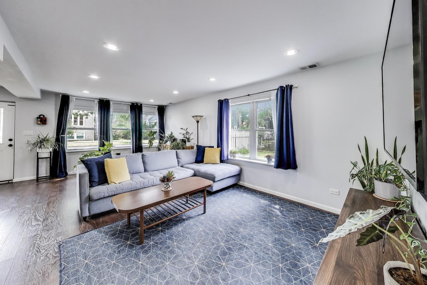 Welcome to this beautifully updated 4 bed, 2.5 bath home on a rare double lot with over 2,700 of interior sqft! From the moment you walk in, you'll appreciate the thoughtful finishes and inviting layout. The sun-filled living room overlooks the stunning yard and flows seamlessly into the chef's kitchen, complete with a luxury Thor stove/oven, stainless steel appliances, wine fridge, breakfast bar, and updated tile backsplash and flooring. The kitchen opens to a dining room that's ideal for gatherings and easily seats 8 guests. Also on the main level are a half bath with newer tile flooring, a laundry room, and mudroom with French doors leading to the backyard patio. Upstairs, the spacious primary bedroom offers room for a king size bed with accompanying furniture, a walk-in closet, and an ensuite bath with a whirlpool tub and separate shower. Two additional bedrooms, another walk-in closet that can double up as an office, and full bath complete the second floor. The third floor boasts a large fourth bedroom that has the versatility of a playroom, family room, or home office. The backyard is a true delight. The fully fenced yard is perfect for pets, kids, and entertaining, featuring a custom designed and landscaped seating area with a stone fire pit, string lights, privacy trees, and lush planters. It's the ideal setting for summer barbecues, dining al fresco, or crisp fall nights. Two garages, each with space for two cars, provide abundant room for parking, storage, or hobbies. Major updates include a newer roof. Many green features such as solar panels, rain barrel, built-in planters, raised garden bed and Google Nest thermostat for heating/cooling efficiency. Located just minutes from the CTA, Metra, and I-290, this home has easy access to quick getaways like Chicago, all while maintaining the calmness of a suburban setting. Neighborhood favorites like FitzGerald's, Autre Monde, Flapjack Brewery, and Milly's Pizza in the Pan are all nearby. This home has it all: generous space, stylish updates, zen outdoor living, and a fantastic location. Step inside and see why this home is truly special!