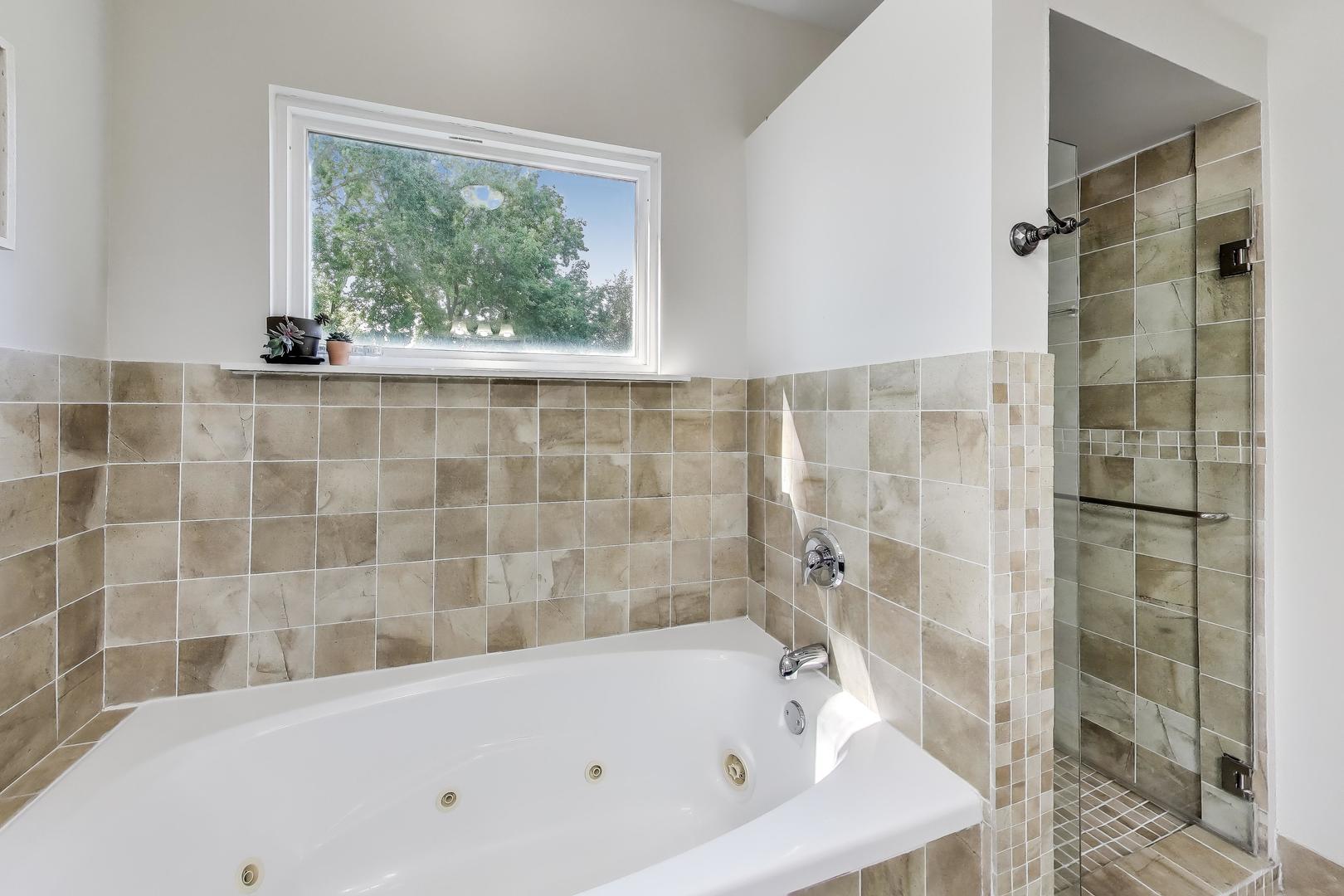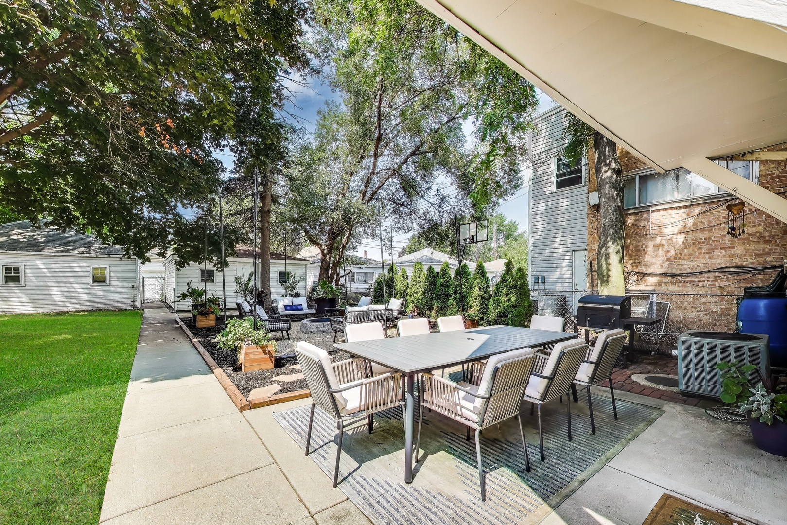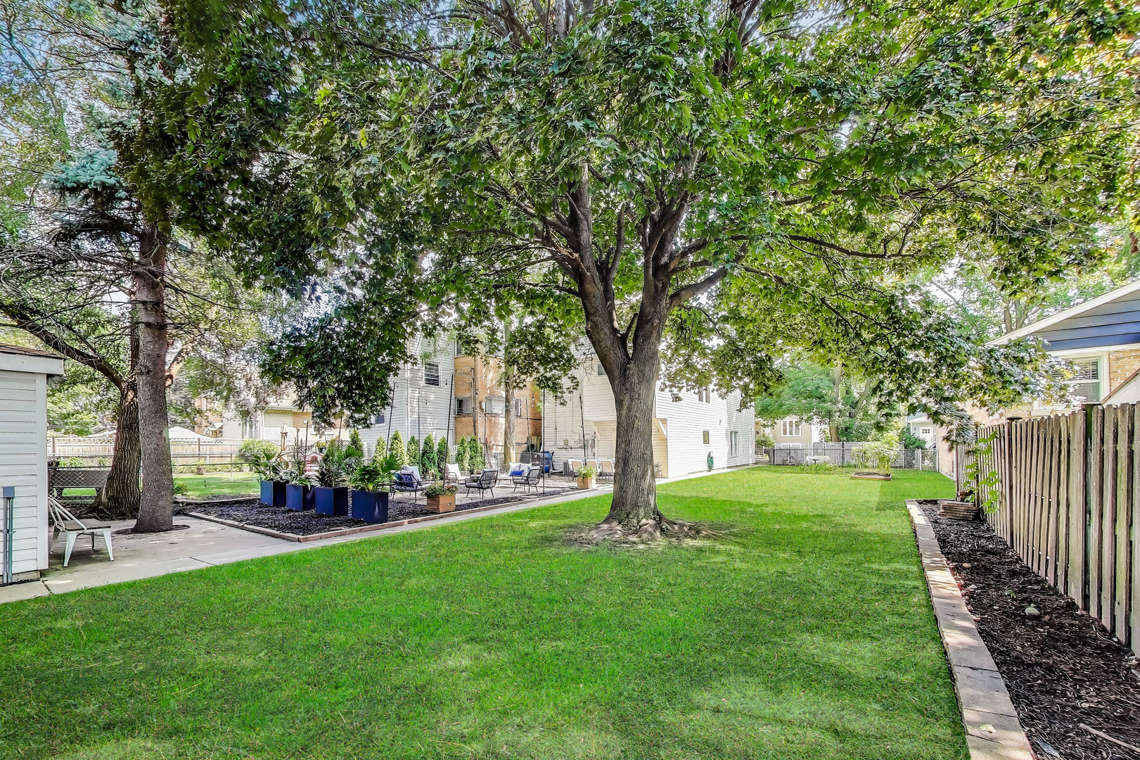 Welcome to this beautifully updated 4 bed, 2.5 bath home on a rare double lot with over 2,700 of interior sqft! From the moment you walk in, you'll appreciate the thoughtful finishes and inviting layout. The sun-filled living room overlooks the stunning yard and flows seamlessly into the chef's kitchen, complete with a luxury Thor stove/oven, stainless steel appliances, wine fridge, breakfast bar, and updated tile backsplash and flooring. The kitchen opens to a dining room that's ideal for gatherings and easily seats 8 guests. Also on the main level are a half bath with newer tile flooring, a laundry room, and mudroom with French doors leading to the backyard patio. Upstairs, the spacious primary bedroom offers room for a king size bed with accompanying furniture, a walk-in closet, and an ensuite bath with a whirlpool tub and separate shower. Two additional bedrooms, another walk-in closet that can double up as an office, and full bath complete the second floor. The third floor boasts a large fourth bedroom that has the versatility of a playroom, family room, or home office. The backyard is a true delight. The fully fenced yard is perfect for pets, kids, and entertaining, featuring a custom designed and landscaped seating area with a stone fire pit, string lights, privacy trees, and lush planters. It's the ideal setting for summer barbecues, dining al fresco, or crisp fall nights. Two garages, each with space for two cars, provide abundant room for parking, storage, or hobbies. Major updates include a newer roof. Many green features such as solar panels, rain barrel, built-in planters, raised garden bed and Google Nest thermostat for heating/cooling efficiency. Located just minutes from the CTA, Metra, and I-290, this home has easy access to quick getaways like Chicago, all while maintaining the calmness of a suburban setting. Neighborhood favorites like FitzGerald's, Autre Monde, Flapjack Brewery, and Milly's Pizza in the Pan are all nearby. This home has it all: generous space, stylish updates, zen outdoor living, and a fantastic location. Step inside and see why this home is truly special!
