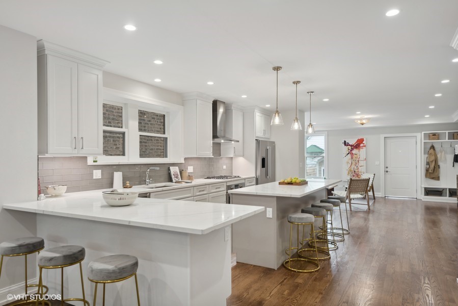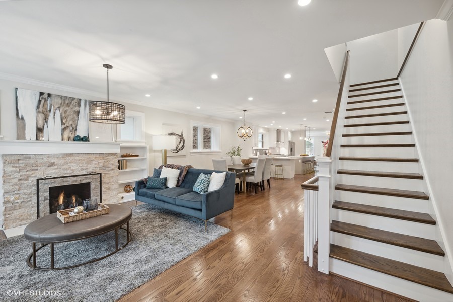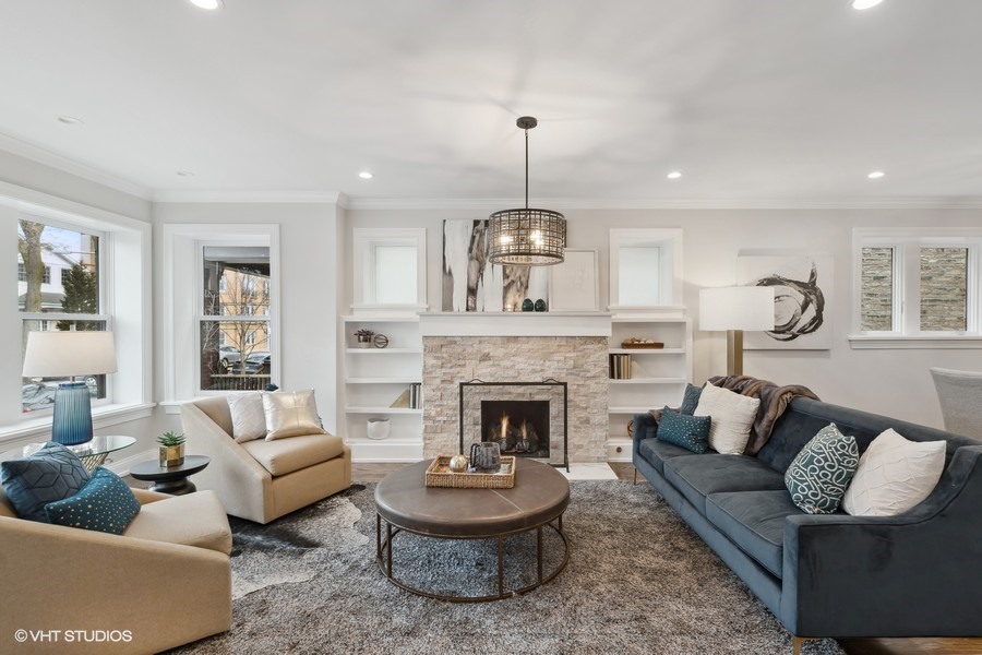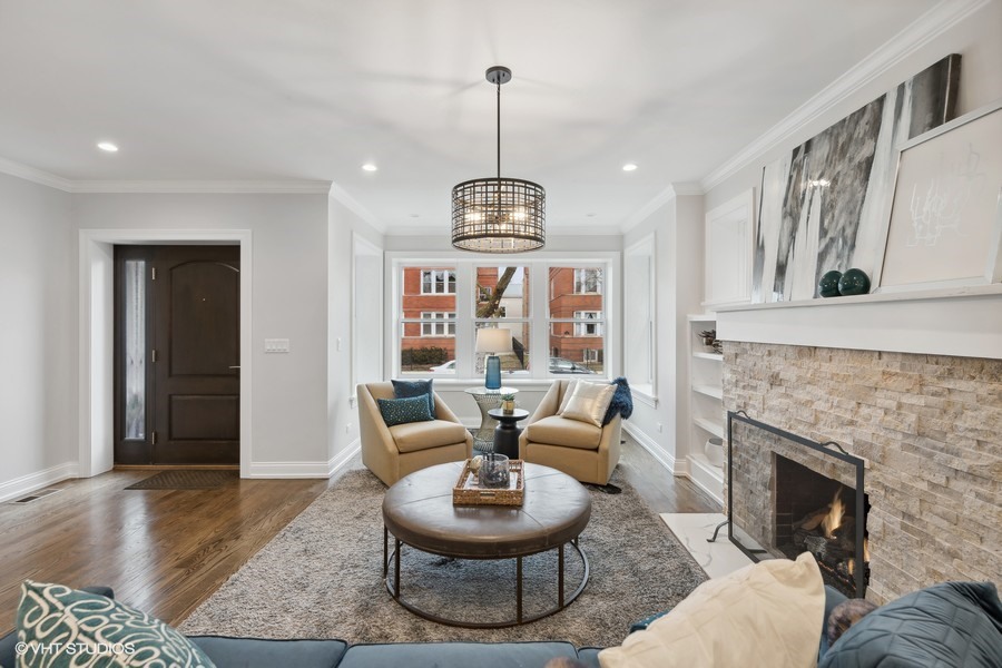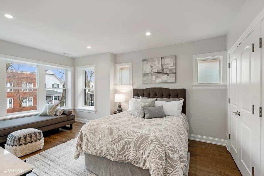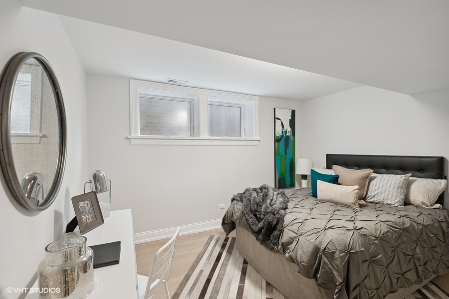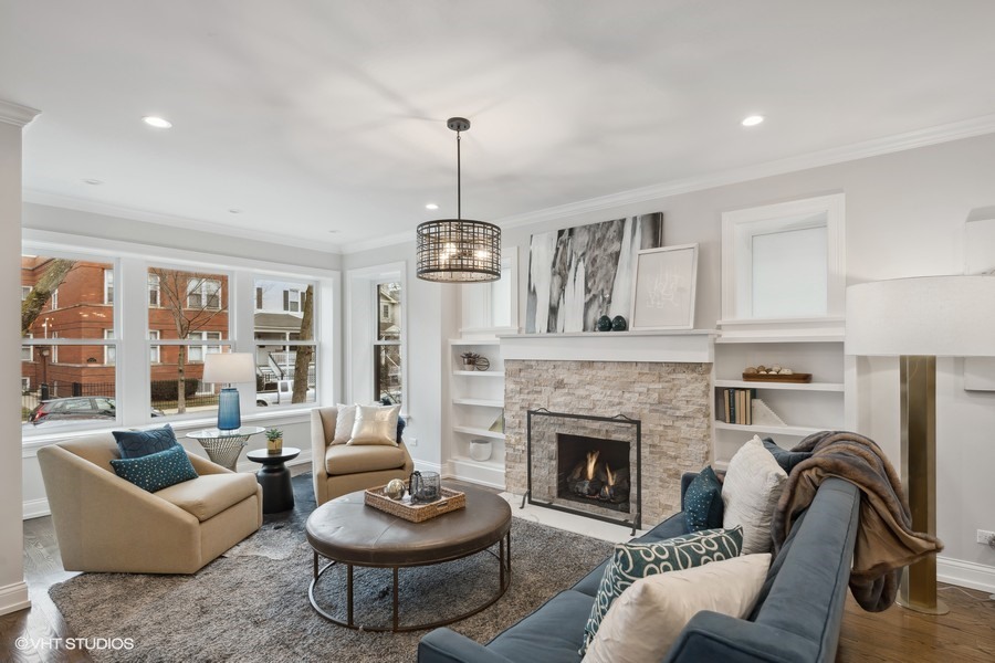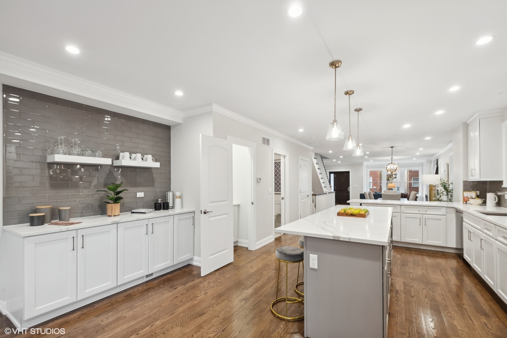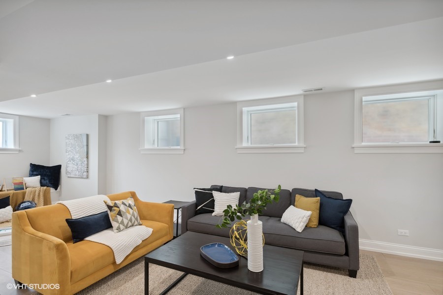 **CLICK THE LINK TO SEE THE 3D TOUR** Vintage Chicago charm meets modern-day living in this gorgeous, recently gut-renovated 6-bedroom, 3.5 bathroom Andersonville home. Formerly a 2-flat, the owner completely reimagined the space, renovating it down to the studs and adding a 3 story addition off the back, to create a thoughtfully designed, non-cookie-cutter home. The main floor is completely open, with sightlines from front to back, and features a living room (with a cozy gas fireplace); a dedicated dining space (that can accommodate an oversized dining table); a massive kitchen with breakfast bar and island seating for 10, Bosch appliances, coffee bar and full pantry built out with cabinetry, quartz countertops, shelving, and an outlet for small appliances; a family room; and a powder room. It's the perfect space for a quiet evening at home with the family, or a holiday party for 30 or more! Upstairs, you'll find the primary suite with a gorgeous en suite bath and large (12X9!) walk-in closet, plus 3 more bedrooms, a full bathroom and laundry room. The basement has a recreation space, wet bar, two more bedrooms and a full guest bathroom. Additional updates include spray foam insulation, electrical and plumbing, drain tile/sump pump, Hardie Board siding on the addition + 2.5-car garage with "party door," new water service and sewer line, and more. Over 4,000+ sq ft of turn-key living - all you need to do is move in and start taking advantage of everything the neighborhood has to offer. You're steps to Chicago Waldorf school and both Andersonville AND Ravenswood's best restaurants, shops and attractions: The Chicago Magic Lounge, Big Jones, Half Acre, Spaca Napoli, and the amazing eateries along Argyle. Seller is open to adding a garage roof deck as an upgrade; inquire with the listing agents for more info.