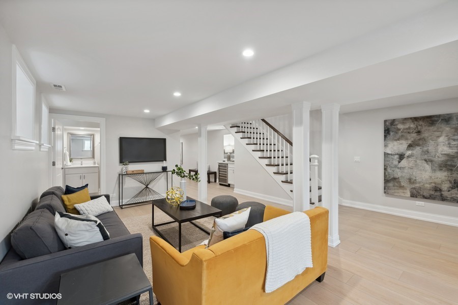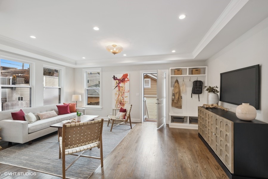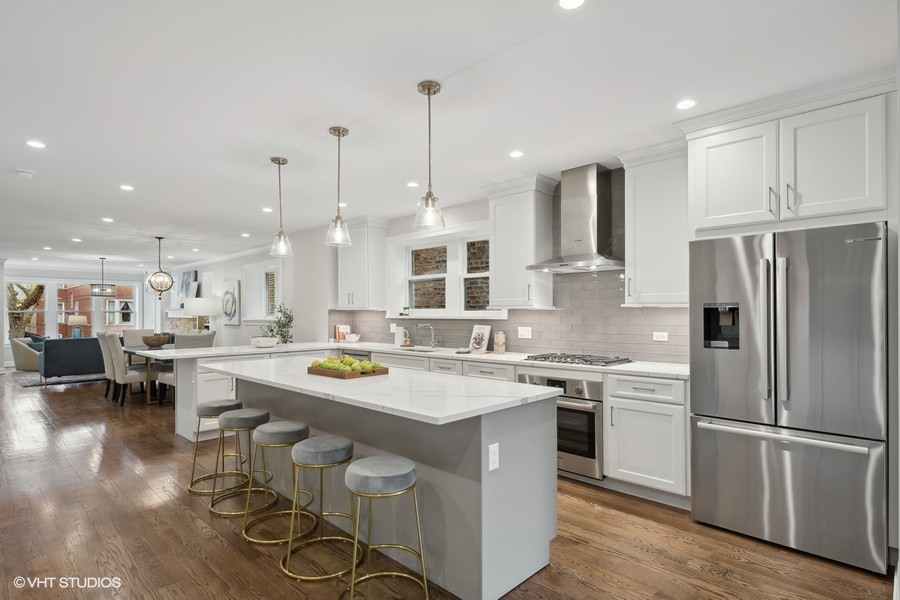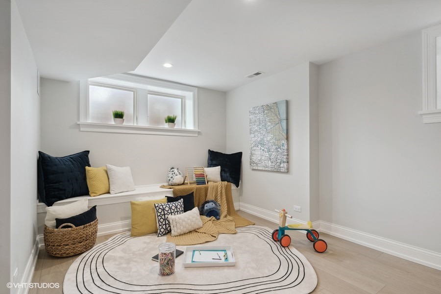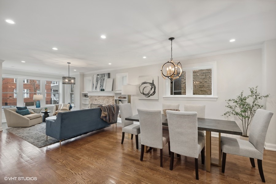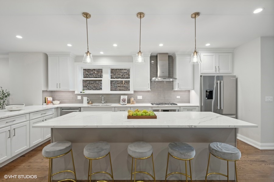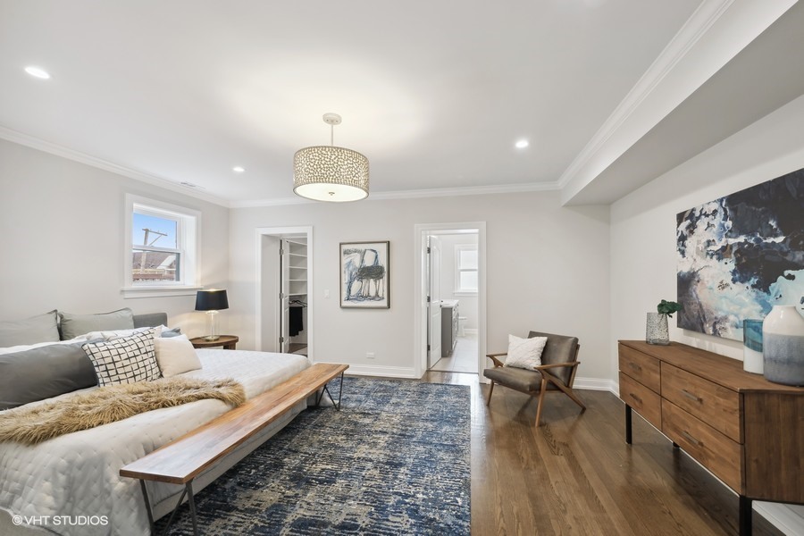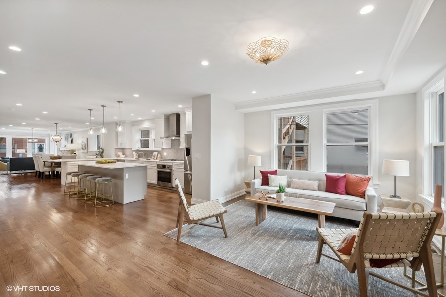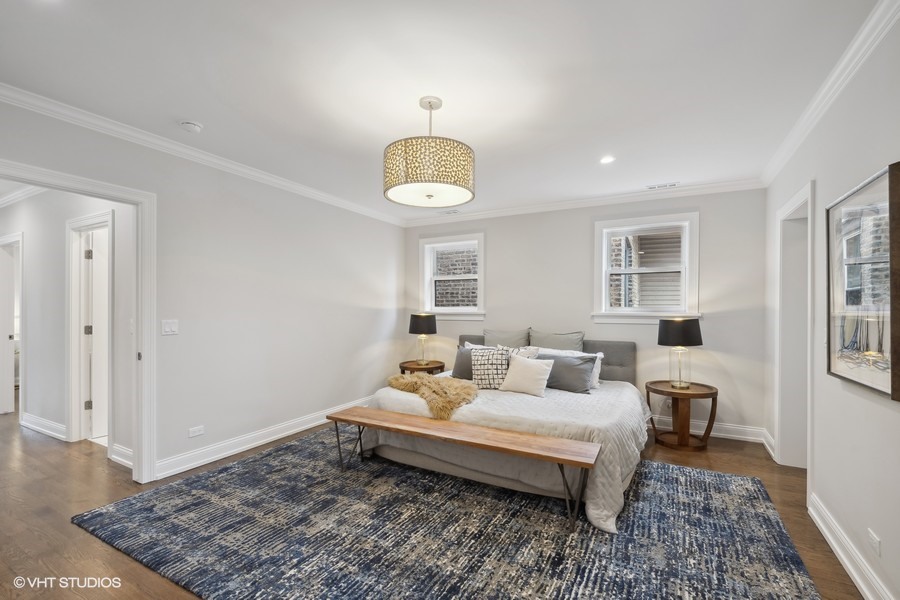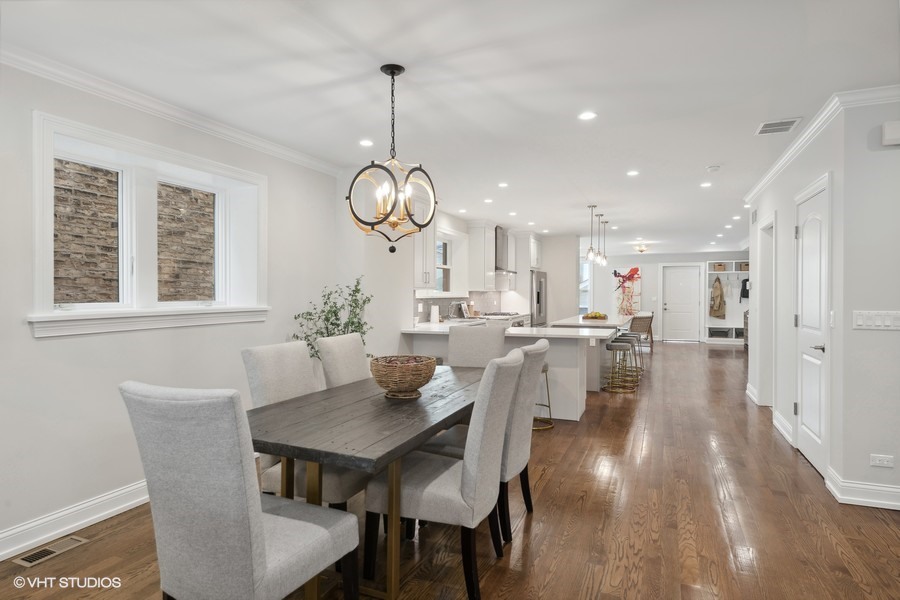 **CLICK THE LINK TO SEE THE 3D TOUR** Vintage Chicago charm meets modern-day living in this gorgeous, recently gut-renovated 6-bedroom, 3.5 bathroom Andersonville home. Formerly a 2-flat, the owner completely reimagined the space, renovating it down to the studs and adding a 3 story addition off the back, to create a thoughtfully designed, non-cookie-cutter home. The main floor is completely open, with sightlines from front to back, and features a living room (with a cozy gas fireplace); a dedicated dining space (that can accommodate an oversized dining table); a massive kitchen with breakfast bar and island seating for 10, Bosch appliances, coffee bar and full pantry built out with cabinetry, quartz countertops, shelving, and an outlet for small appliances; a family room; and a powder room. It's the perfect space for a quiet evening at home with the family, or a holiday party for 30 or more! Upstairs, you'll find the primary suite with a gorgeous en suite bath and large (12X9!) walk-in closet, plus 3 more bedrooms, a full bathroom and laundry room. The basement has a recreation space, wet bar, two more bedrooms and a full guest bathroom. Additional updates include spray foam insulation, electrical and plumbing, drain tile/sump pump, Hardie Board siding on the addition + 2.5-car garage with "party door," new water service and sewer line, and more. Over 4,000+ sq ft of turn-key living - all you need to do is move in and start taking advantage of everything the neighborhood has to offer. You're steps to Chicago Waldorf school and both Andersonville AND Ravenswood's best restaurants, shops and attractions: The Chicago Magic Lounge, Big Jones, Half Acre, Spaca Napoli, and the amazing eateries along Argyle. Seller is open to adding a garage roof deck as an upgrade; inquire with the listing agents for more info.