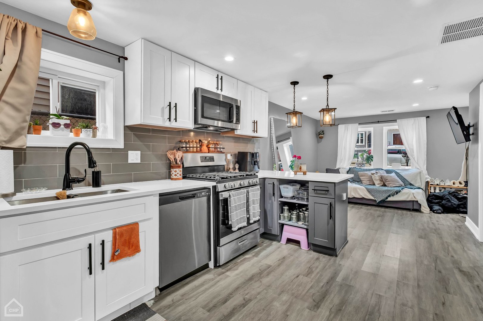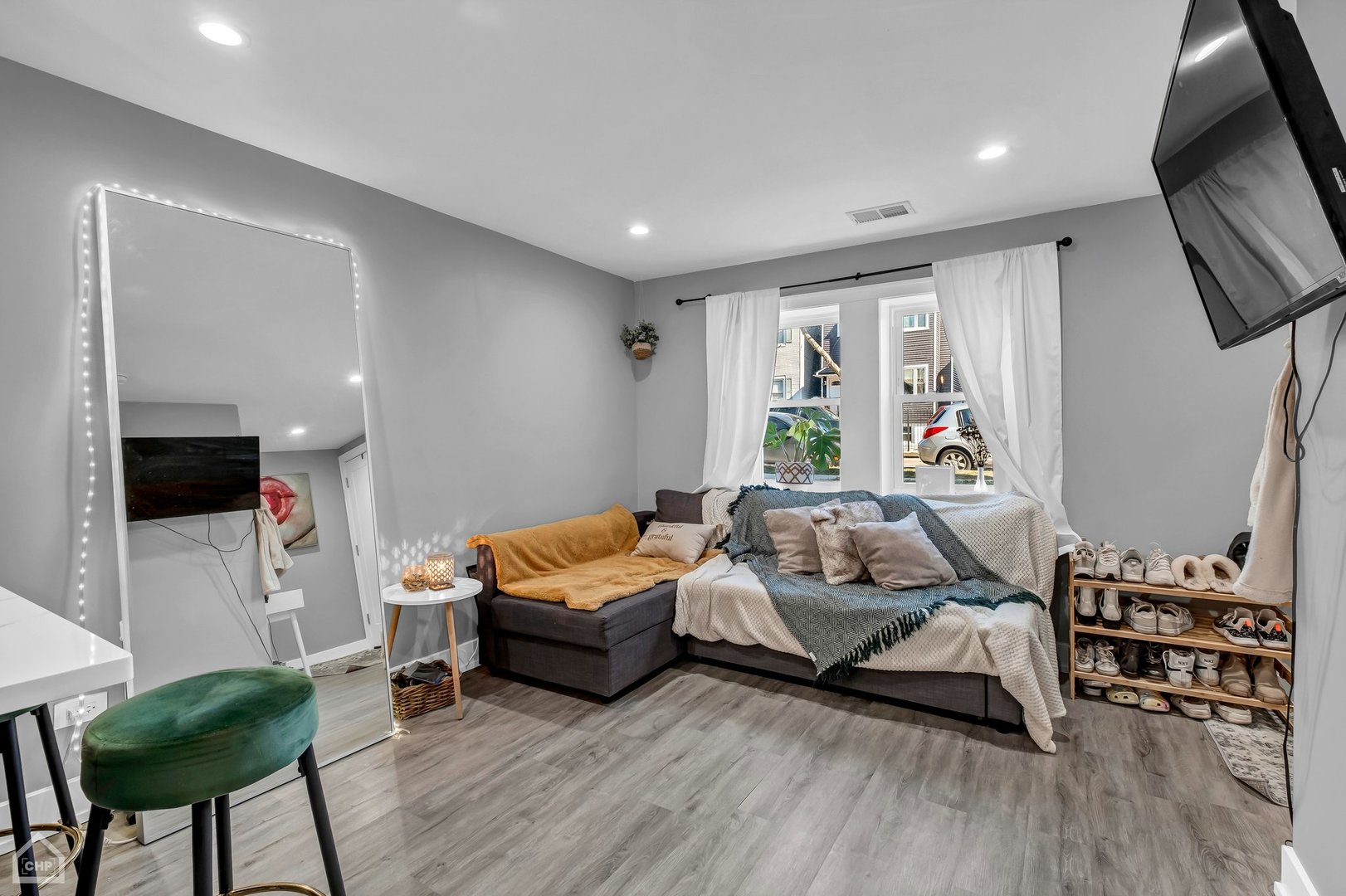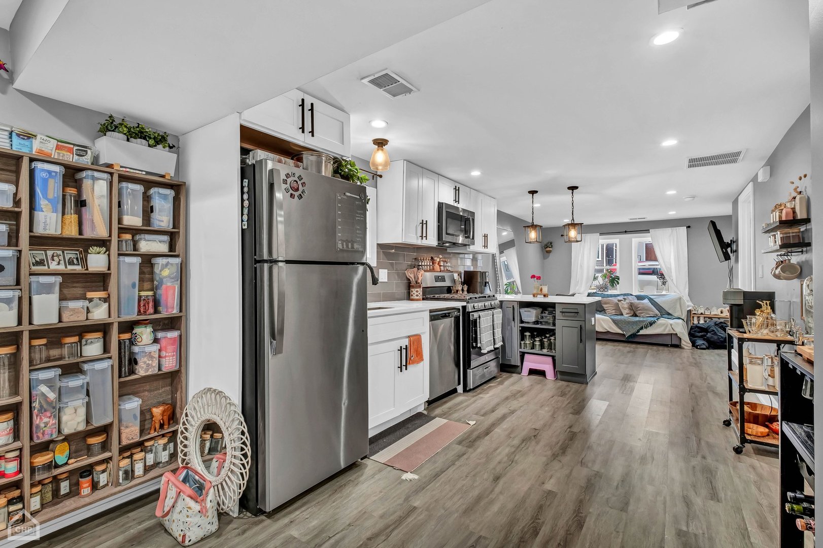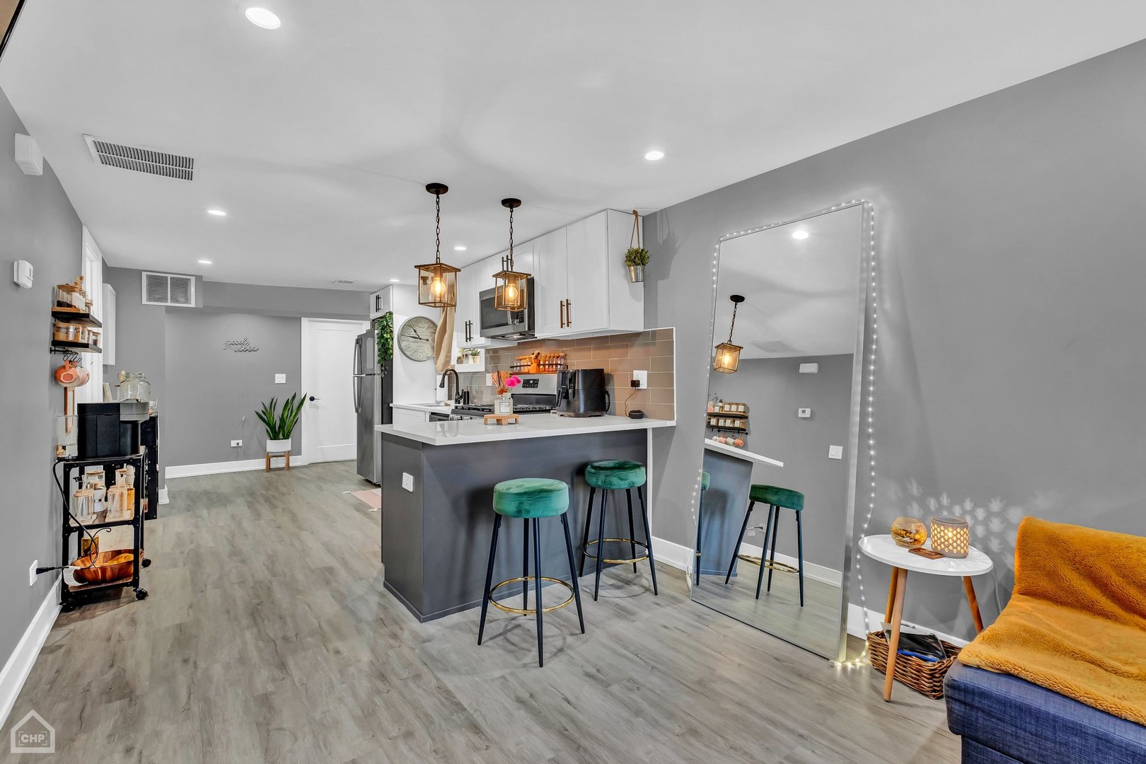 This is your chance to invest in a spectacular turnkey home nestled in one of the most sought-after neighborhoods, Logan Square! Meticulously renovated from the ground up, this property boasts a complete overhaul, ensuring a worry-free investment for the savvy buyer or investor. The property has undergone a comprehensive renovation in 2021 with all new windows, electrical, roof, copper plumbing, siding, and HVAC. New front porch and rear ground level deck with newly poured concrete in the front and rear of the property. Unit 1 offers a thoughtfully designed open floor plan with 3 bedrooms and 1 bath, featuring oak wood flooring, recessed lighting, and modern finishes. The kitchen is a culinary dream with white shaker cabinets, quartz countertops, and stainless steel appliances. The lower level is a non-conforming 2-bedroom/1-bath space, that exudes luxury with vinyl plank flooring, a stunning island adorned with pendant lights, and elegant white/grey cabinetry. Modern bathrooms showcase half-glass shower doors for a touch of sophistication. Perfect for Live/Work, Extended Family, or future Airbnb. All separate utilities with free shared laundry and lots of storage in the enclosed back porch. Benefit from a 2-car parking pad, ready for a garage build-out. This turnkey gem presents an ideal opportunity for house-hacking, allowing you to reside in one unit while renting out the other to offset your mortgage. The property is part of an approved ADU Pilot program that offers a possible path of conformity. Fantastic location, a short 3-minute walk to the 606 trail, Parson's, Bang Bang Pie, Lonesome Rose, California Blue Line, Milwaukee Corridor and so much more! See broker remarks.