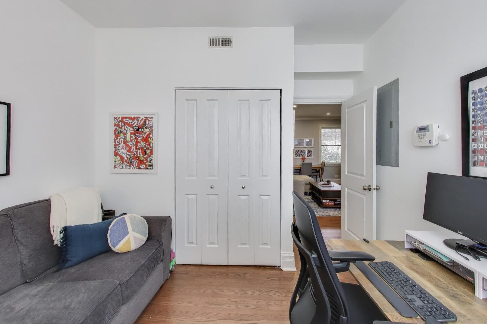 Located in the heart of Lincoln Park on a peaceful, tree-lined block, this rare 2 bed, 1.5 bath top-floor condo offers thoughtful updates, hardwood floors, and incredible natural light throughout. The living room features large windows and access to a private balcony, perfect for morning coffee or relaxing after a long day. A second outdoor space is located just off the kitchen, ideal for grilling and effortless entertaining. The primary bedroom includes an en suite bath, and both bedrooms offer generous closet space. There is also a massive (heated!) storage room in the basement, along with a dedicated bike room. In-unit laundry, central heat/AC, and well-maintained common areas make everyday living easy. Street parking is permit-only and super easy. That said, you may never need a car. You're just minutes to the Diversey Brown and Purple line and steps to neighborhood favorites including Wiggly Field Dog Park, Trader Joe's, LPAC, Cafe Deko, Butcher & The Bear, and endless shopping, dining, and fitness options. This is the perfect home for anyone wanting modern convenience, unbeatable walkability, and the charm of classic Chicago living.
