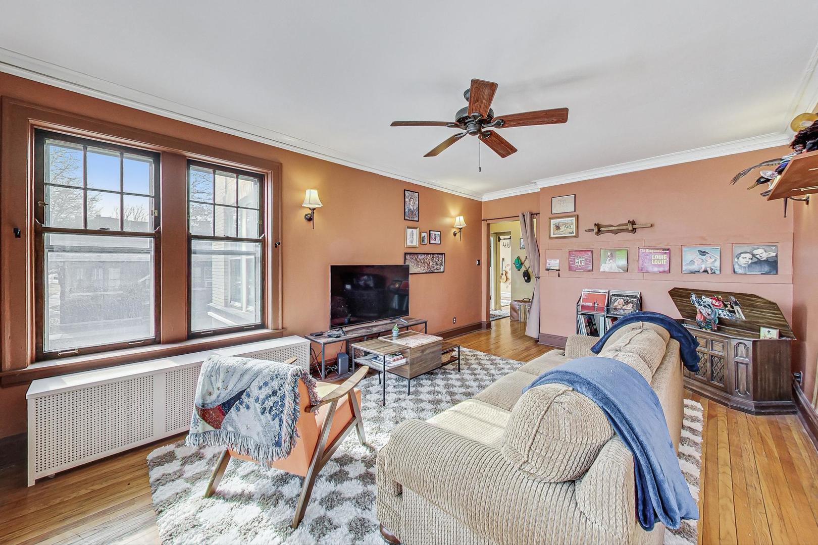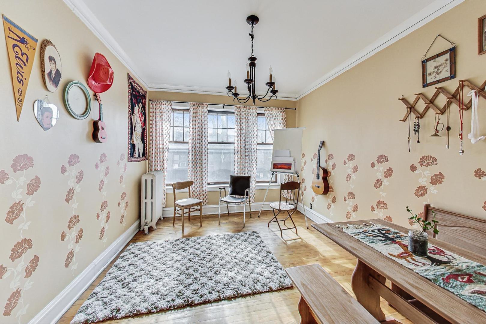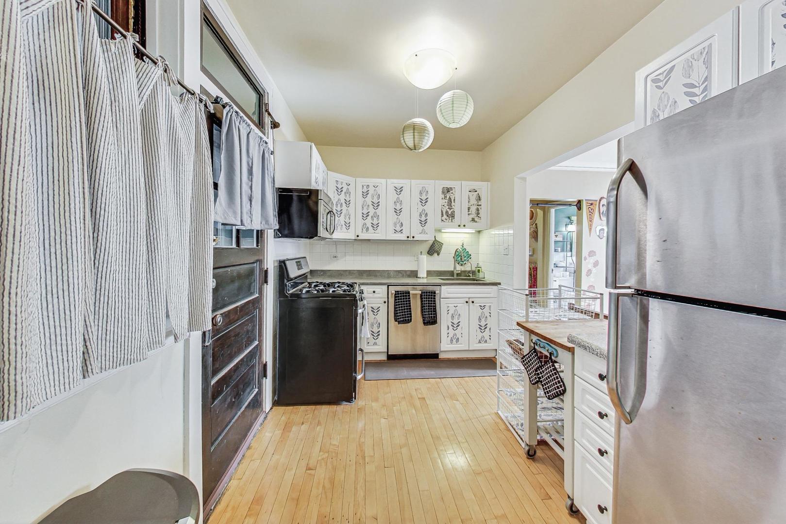 Experience this charming corner unit situated on a one-way street with southeastern exposure and beautiful park views. Tons of morning sun pours in and accents the greenery of Winnemac Park to get your day started off in the best way possible. Expansive rooms, vintage touches, and prime location make this the perfect place to call home. Tasteful updates accent the timeless character of the unit and bring all the modern conveniences you would expect. The south-facing formal dining room and spacious kitchen with stainless steel appliances make for a perfect place to host friends and family. Right off the kitchen is a lovely little back deck to enjoy the summer months, or stroll across the street to the park and enjoy all it has to offer. The unit comes complete with a generously sized storage unit, and the building offers common bike storage and a laundry room equipped with newer washers and dryers. The Metra rail and the Brown Line are great for hassle-free commuting, and you have all the fantastic offerings of Lincoln Square just moments away.
