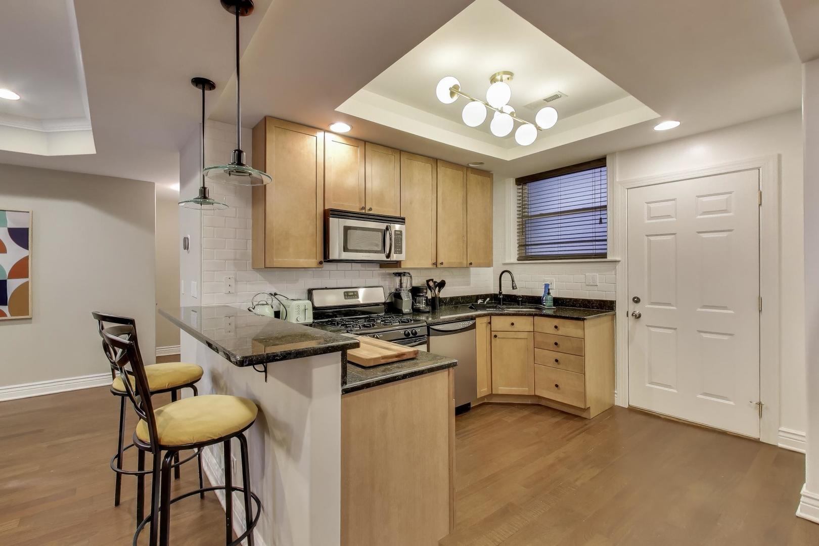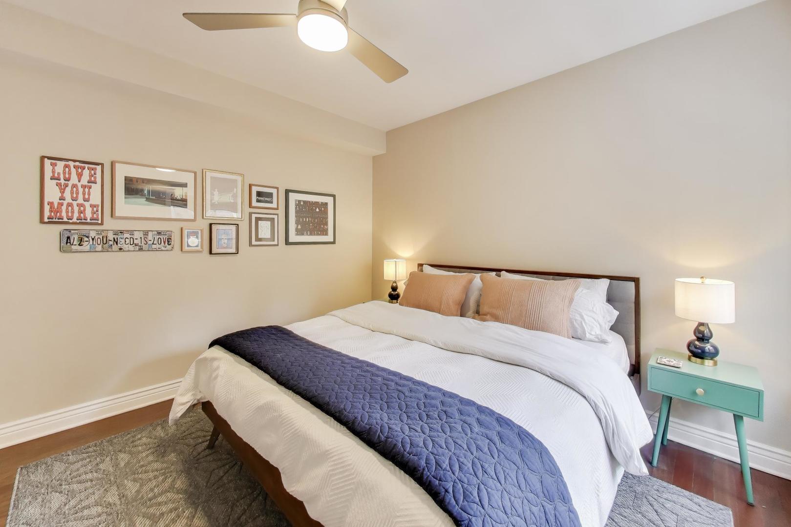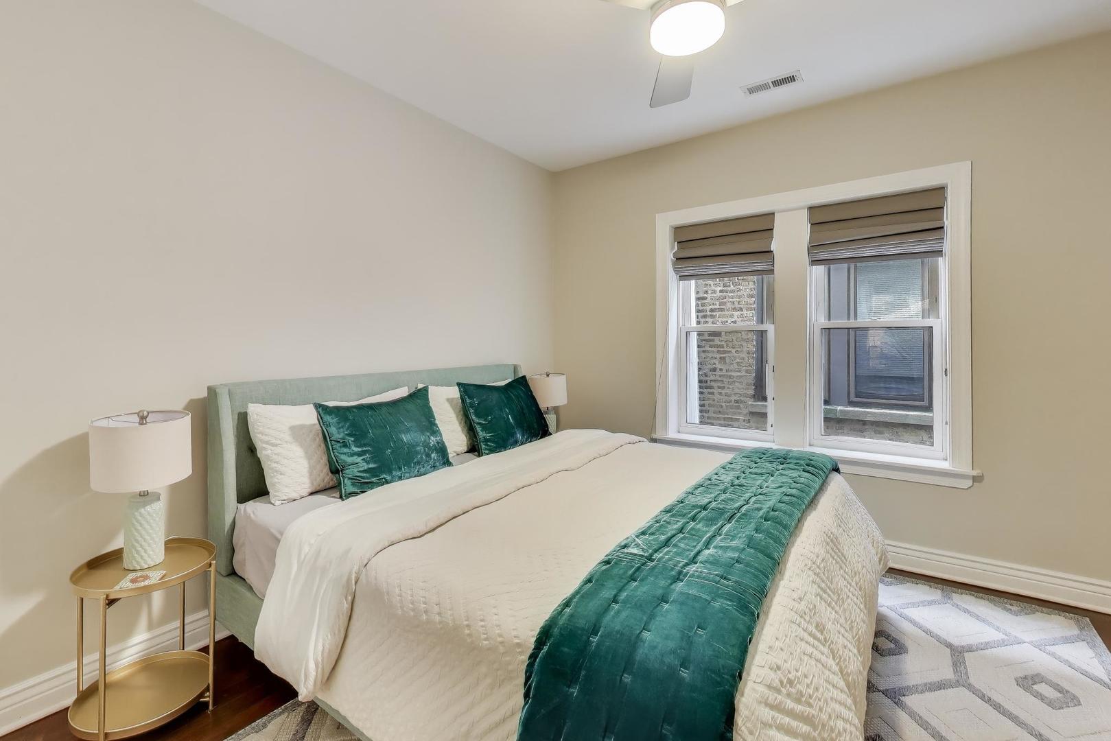 This gorgeous 2 bedroom 1 bathroom condo is located in a classic Chicago courtyard building in an A+ East Lakeview location! When you step inside the home you will immediately notice the spacious living area with room for a sectional sofa as well as a separate dining table! The open concept kitchen provides plenty of storage and stainless steel appliances. Enjoy modern updates like central heat and AC, in-unit washer dryer, hardwood floors throughout, a newly renovated bathroom, and custom built-out closets. The split floor plan offers two generously sized bedrooms, both capable of fitting a king bed! You are a short walk away from the lakefront, restaurants, bars, shopping, grocery stores, and public transit. No parking. No dogs.