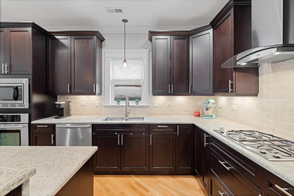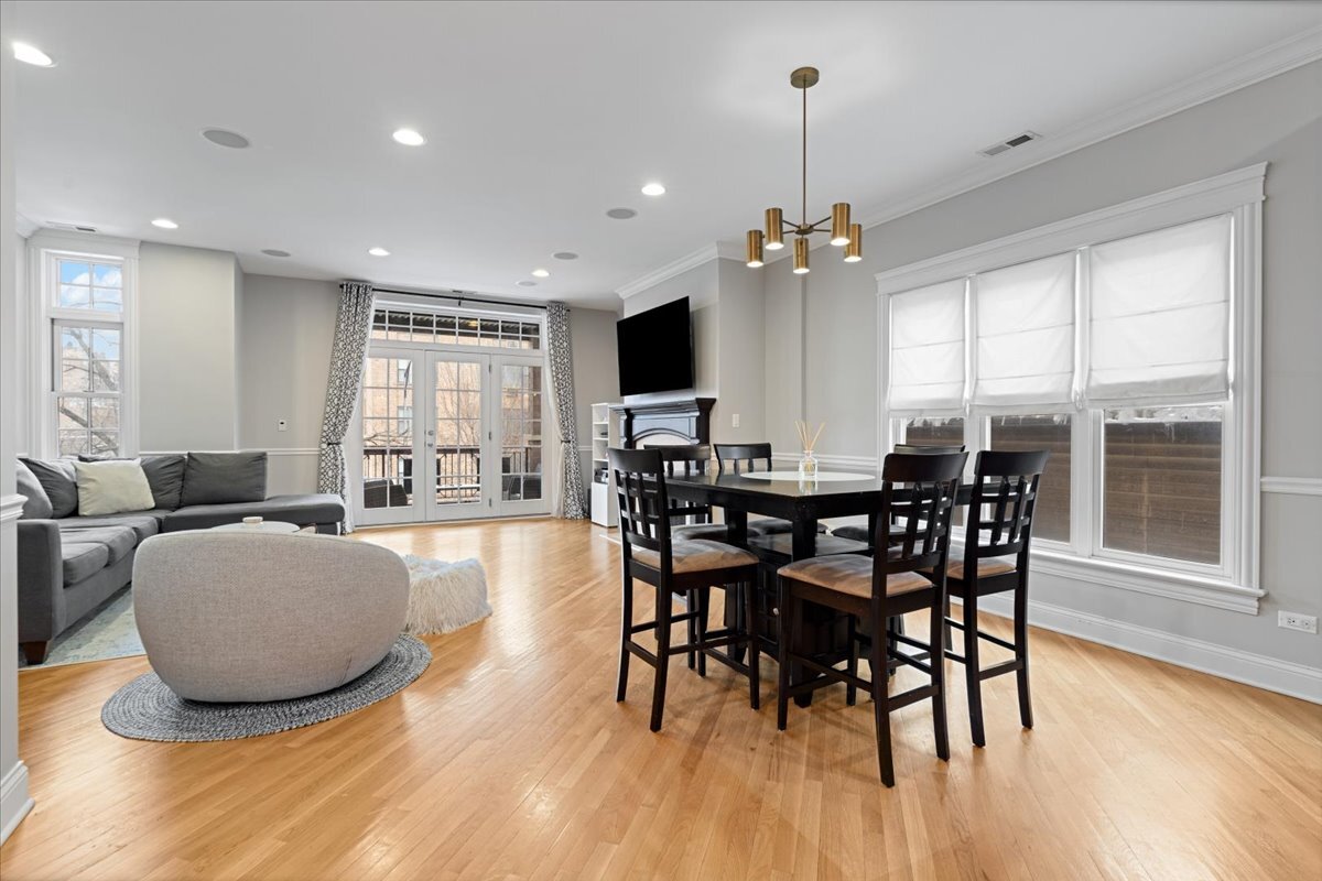 This is the kind of Lincoln Park condo buyers wait for. All-brick. Extra-wide. Nearly 1,800 square feet. Three bedrooms, two baths, and set in a quiet 8-unit building on an oversized lot, half a block from Halsted and two blocks to Broadway. The layout is the win. A true open "heart of the home" with a transitional kitchen that flows straight into a massive dining and living space. Custom 42" dark cabinetry, stainless steel appliances, full-height backsplash, and a two-tier island with storage on both sides. The family room is anchored by a gas starting/wood-burning fireplace and framed by floor-to-ceiling windows that open to a 15x12 walk-out patio, built for entertaining. The bedroom wing is smart and private. Three large bedrooms with deep closets and oversized windows. The primary suite spans 17x14, overlooks the backyard, and delivers a spa-level bath with heated floors, steam shower, built-in bench, and body sprays. Fresh paint. New carpet in the bedrooms. HVAC and water heater replaced in 2023. In-unit laundry, private storage, and garage parking included. Big space. Prime location. Zero compromise. **HIGHEST AND BEST OFFER DEADLINE IS MONDAY (2/9) AT 10 AM (CST). UNFORTUNATELY, THE SELLERS WILL NOT CONSIDER ESCALATION RIDERS. IDEAD CLOSING DATE FOR SELLERS IS A FEW DAYS BEFORE MARCH 11TH, WITH A 1 WEEK LEASE-BACK.**