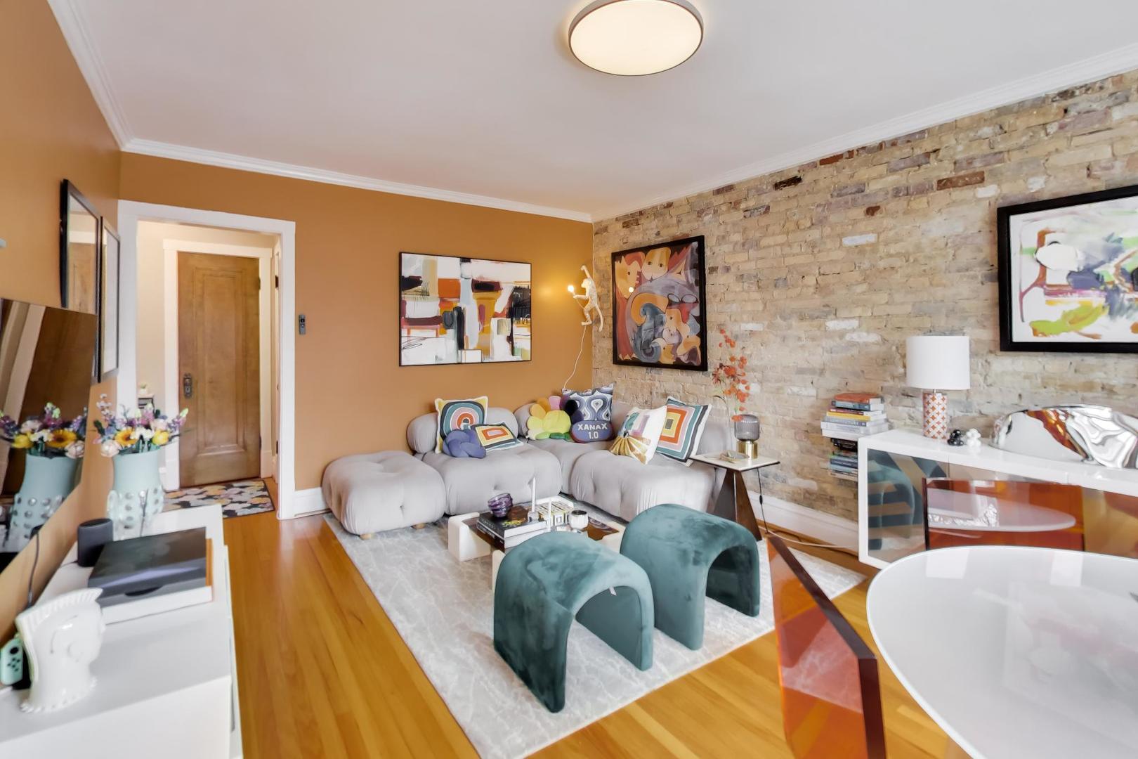 Sun-drenched, top-floor living in the heart of Lincoln Park-this beautifully updated 1-bedroom pairs classic charm with thoughtful, modern upgrades. The recently updated kitchen offers a level of finish not often found at this price point, featuring custom BauTeam cabinetry with smart storage throughout, quartzite countertops, Italian porcelain tile, a Forno refrigerator, GE range and microwave, an integrated Miele dishwasher, and a Moen smart faucet with integrated water filtration. The kitchen also opens to a spacious rear deck-ideal for grilling, dining, or relaxing outdoors. The south-facing living space is filled with natural light and overlooks the treetops of Wrightwood. The generous living space easily accommodates both comfortable seating and a dining area, anchored by a classic exposed brick wall that adds warmth and character. Just off the living room, a quaint terrace provides another outdoor space. The bedroom is well-sized with a custom-built out closet. The bathroom has been updated with heated floors, Moen plumbing fixtures, a modern vanity, and additional storage. A massive walk-in closet and well-sized coat closet have both been professionally built out to provide amazing storage in this home. Additional improvements include a new electrical panel, updated lighting throughout, and custom roller shades in every room-making this a truly move-in ready home. The building features a beautifully landscaped courtyard with mature trees and multiple seating areas, offering a welcoming space to relax or entertain guests. Located in one of Lincoln Park's most desirable pockets, you are just steps from Trader Joe's, The Fresh Market, CTA trains and bus lines, and the neighborhood's best dining, shopping, and nightlife. Two large storage closets in the basement are included. W/D is allowed to be added.