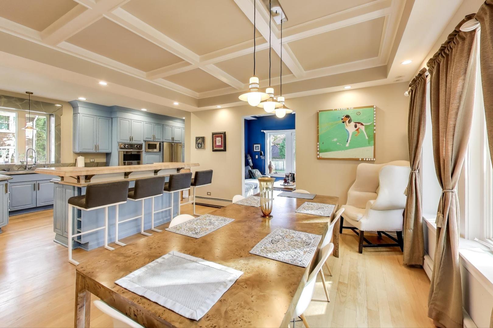 Welcome to 823 Jackson Boulevard- one of River Forest's most distinguished estates. Located in the heart of the coveted Estate District, this 1919 Buurma Bros-designed masterpiece blends Spanish, Prairie, and Arts & Crafts influences into a truly grand residence. Set on nearly a half-acre -one of the largest private lots in River Forest. This 6-bedroom, 5.5-bath estate is a rare offering combining architectural pedigree, privacy, and modern luxury. A stately porte-cochere and new automatic gates set the tone for the property's grandeur, leading to a wide extended driveway and a 3-car garage tucked discreetly at the rear of the home for both convenience and privacy. Inside, a grand foyer evokes the ambiance of a five-star European hotel with a custom front door featuring original leaded glass and knuckle hinges, checkerboard marble flooring, grasscloth wall covering, coffered ceilings, and a refurbished sweeping staircase. Completely reimagined through a full renovation, every inch of this home has been thoughtfully restored and elevated with high-end, timeless finishes. The chef's kitchen showcases custom cabinetry, Viking appliances - double ovens, a French door refrigerator, built-in convection microwave, Thermador induction cooktop with downdraft ventilation, and double-laminated Blue Roma quartzite counters from a single Brazilian quarry, paired with a 3" end-cut maple butcher block island. The bathrooms are adorned with sleek marble tile, retro pedestal sinks, and spa-inspired fixtures. The 2nd floor showcases 3 bedrooms + den with 3 full baths. The primary suite offers an oversized en-suite bathroom as well as new California Closets walk-in with cedar walls and ceiling. The junior primary suite with ensuite bathroom has an attached den/office overlooking the backyard. The 3rd level has 2 bedrooms and full bathroom. The expansive lower level includes a large recreation room, office/fitness space, guest bedroom, full bath, laundry room, storage. Newer home systems throughout include; plumbing, electrical, windows, rebuilt clay tile roof and flood control with back-flow prevention. The outdoor space is a private sanctuary - perfect for entertaining or unwinding - with a large grassy yard and a completely renovated saltwater pool (2024: new coping, resurfacing, winterized lines, and new mechanicals). Located on one of River Forest's most picturesque, tree-lined streets, this home offers an ideal balance of privacy and convenience - close to top-rated schools, parks, shopping, dining, and the Metra for an easy 20-minute commute to downtown Chicago. 823 Jackson is more than a home - it's a legacy estate, a luxurious retreat, and a timeless work of art.